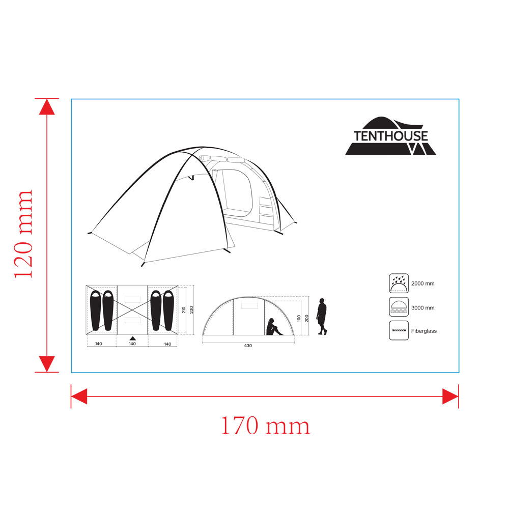 Tenthouse Fun 4 Kişilik Yüksek Çadır (145+150+145)*225*200 cm